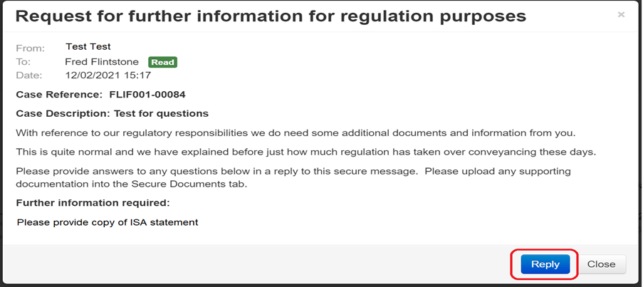 We appreciate that you may be tempted to simply email us back when you receive a secure message. However, we would ask that so far as you are able, you respond to any Secure Message by replying directly to this as opposed to emailing us.